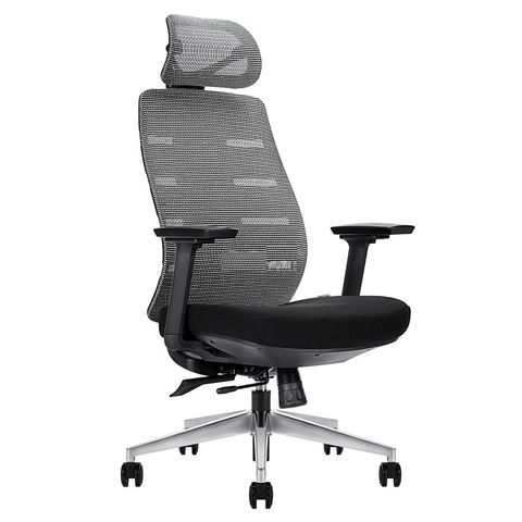 Tekkashop HPGV413 Ghế lưới văn phòng lưng cao có tựa đầu, ghế nhân viên chân xoay mạ